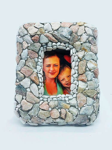 Tento jedinečný robustný fotorámik bol vyrobený ručne z pravých prírodných kameňov. Váži až neuveriteľných 1,5 Kg. Určite každého zaujme na prvý pohľad. Majestátnosť fotorámiku upúta pozornosť nie len na seba samého, ale aj na samotnú fotografiu, ktorá sa na prvý pohľad javí ako utopená v samotnom fotorámiku, avšak o to viac má človek zvedavosť ju v ňom preskúmať.