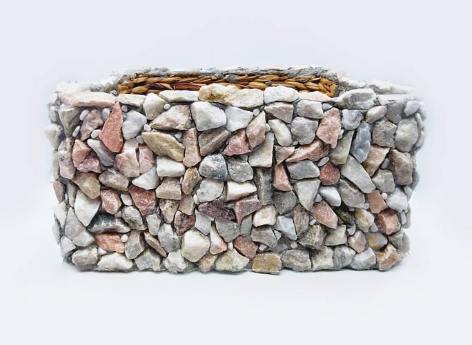 Vďaka váhe kameňov a pevnej základni nehrozí prevrátenie ani počas silného vetra. Tento „Kameňák“ je odolný voči exteriérovým poveternostným podmienkam vďaka dôslednej povrchovej úprave. Je dodávaný spolu s geotextíliou pevne pripevnenou a pripravenou na sadenie rastliniek. Máte tiež možnosť vybrať si, či ho chcete s otvorom na dne, alebo bez otvoru. Pri výrobe je použitý špeciálny spojivový materiál, ktorý tento výrobok chráni proti nasiakavosti vodou a následného znehodnotenia výrobku. Všetky naše výrobky spĺňajú požiadavky najvyššej kvality a individuálnej jedinečnosti. Stojí za nimi práca celého tímu ľudí od skladníka, výrobného pracovníka, administratívneho pracovníka a pod., až po zakladateľku spoločnosti.