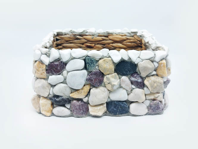 Z pravých prírodných kameňov. Vďaka svojej váhe ho neprevráti ani silný vietor. V maximálnej miere dbáme na kvalitu. Každý jeden kus prešiel dôslednou povrchovou úpravou, aby dokázal odolávať exteriérovým podmienkam naozaj dlhé roky.