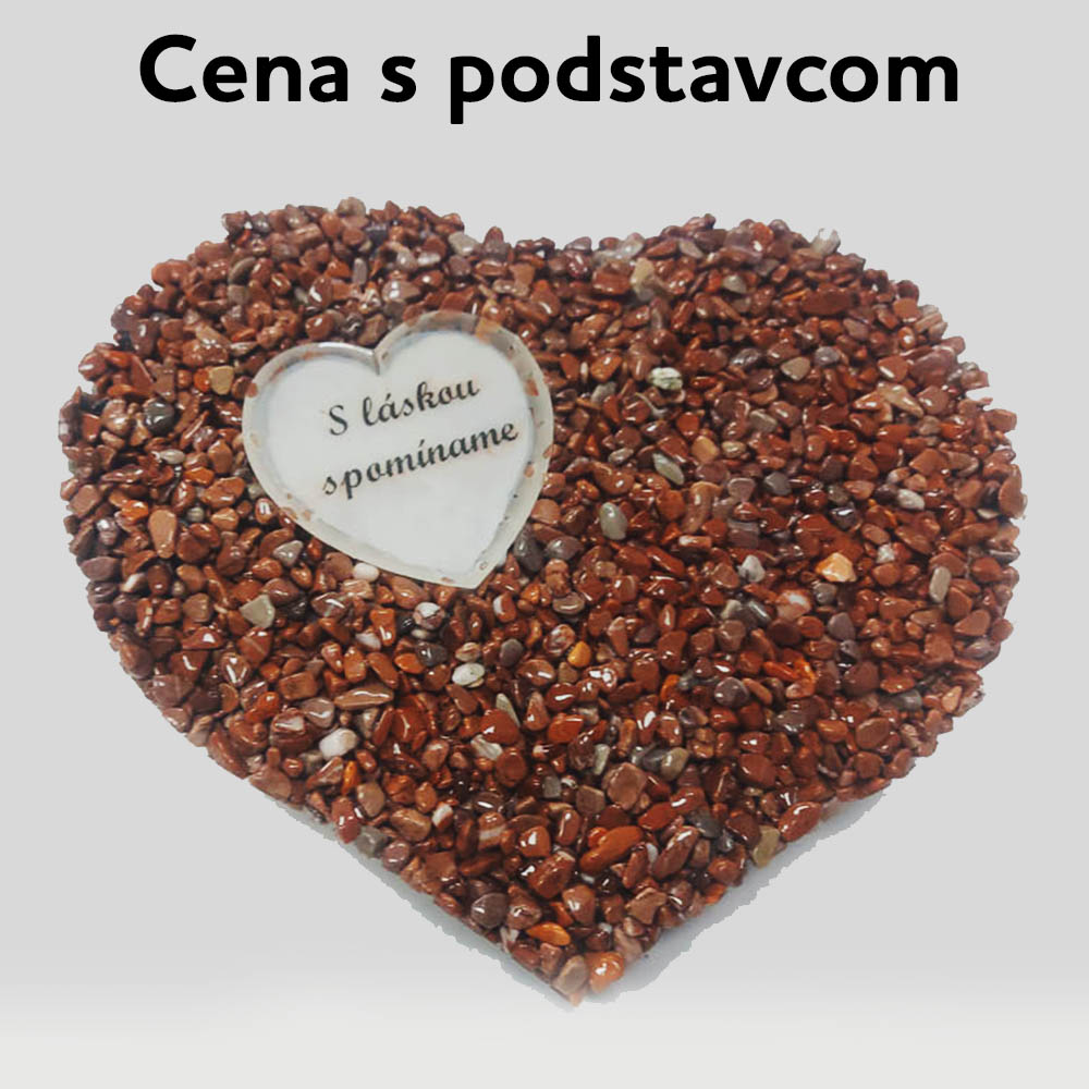 V cene je srdiečko z kamienkov zaliatych do živice, podstavec, okrasný prvok s textom „S láskou spomíname“ taktiež zaliaty do živice a ručné zdobenie kvetinovou výzdobou.