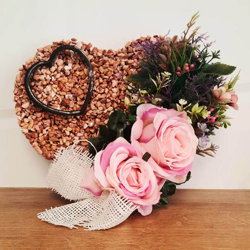 V cene je srdiečko z kamienkov zaliatych do živice, podstavec, okrasný prvok zo živice a ručné zdobenie kvetinovou výzdobou.